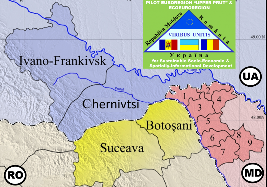 Єврорегіон «Верхній Прут» замкнув низку таких транскордонних структур, як єврорегіони «Буг», «Карпатський» і «Нижній Дунай» вздовж усього спільного кордону України з нинішніми членами ЄС і НАТО. «Верхній Прут» об’єднує Чернівецьку та Івано-Франківську області України, Сучавський і Ботошанський повіти Румунії та 7 регіональних суб’єктів зони розвитку «Nord» із центром у м. Белць Республіки Молдова. Першим в Україні цей єврорегіон уклав партнерські відносини з Австрійською федеральною землею Карінтія та баварським округом Швабія. Розпорядженням від 14.02.2002 № 59-р Кабінет Міністрів України встановив пілотний статус для «експериментального відпрацювання у межах зазначеного єврорегіону механізмів транскордонного співробітництва як елементів процесу європейської інтеграції і розбудови регіональної політики».