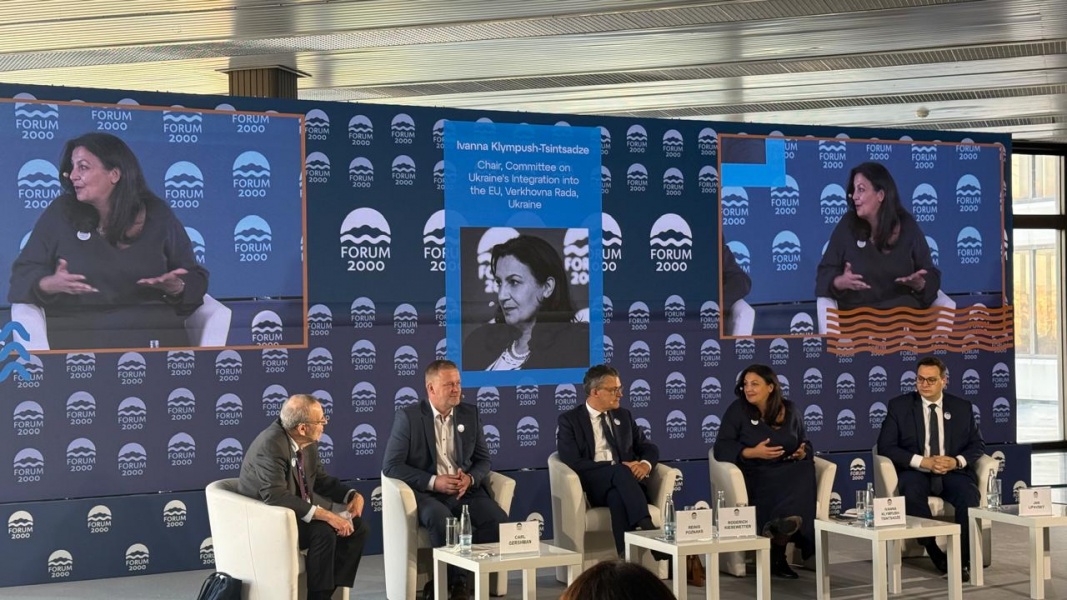 Голова Комітету з питань інтеграції України до ЄС Іванна Климпуш-Цинцадзе та перший заступник голови Комітету Вадим Галайчук взяли участь у роботі “Форуму 2000”, який щороку відбувається у Празі. “Форум 2000” — це міжнародний майданчик, який вже понад чверть століття об’єднує лідерів думок, дипломатів, політиків та представників громадянського суспільства для обговорення майбутнього демократії та глобальної безпеки. Цього року захід зібрав понад 750 учасників з більш, як ста країн світу. Тут були фахівці із Південної Америки, Африки, Азії, що, за словами Іванни Климпуш-Цинцадзе та Вадима Галайчука, дало змогу в ширшому контексті сформулювати цілі та загрози, з якими стикається Україна та Європа, а також краще зрозуміти глобальні акценти і виклики, які постають перед суспільствами в інших регіонах. “Для нас принципово важливо, що на форумі є взагалі окремий трек, так званий “український форум”, який глибше аналізує процеси пов'язані з нашими безпековими викликали, оборонним потребами, демократичною трансформацією і європейською інтеграцією”, — зазначила Іванна Климпуш-Цинцадзе.