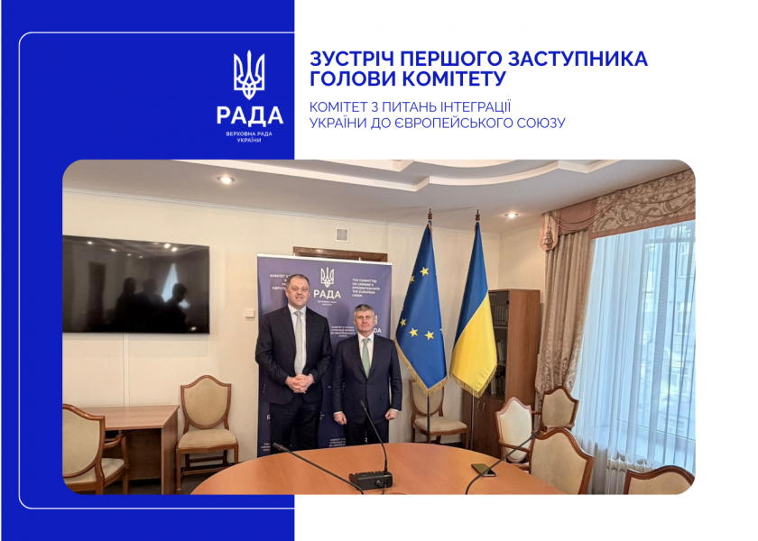 Перший заступник голови Комітету з питань інтеграції України до ЄС Вадим Галайчук зустрівся із Державним міністром у справах Європи та оборони Ірландії Томасом Бьорном. Cторони обговорили євроінтеграційний поступ України та досвід Ірландії, яка пройшла цей шлях понад 50 років тому.